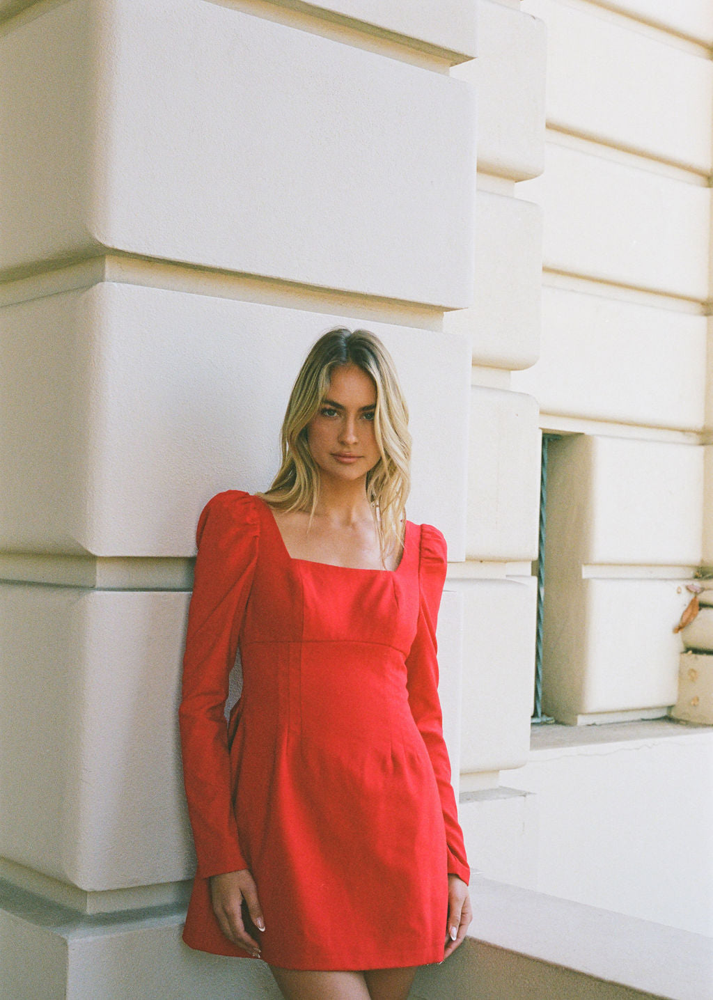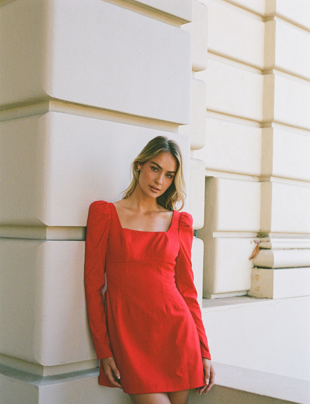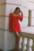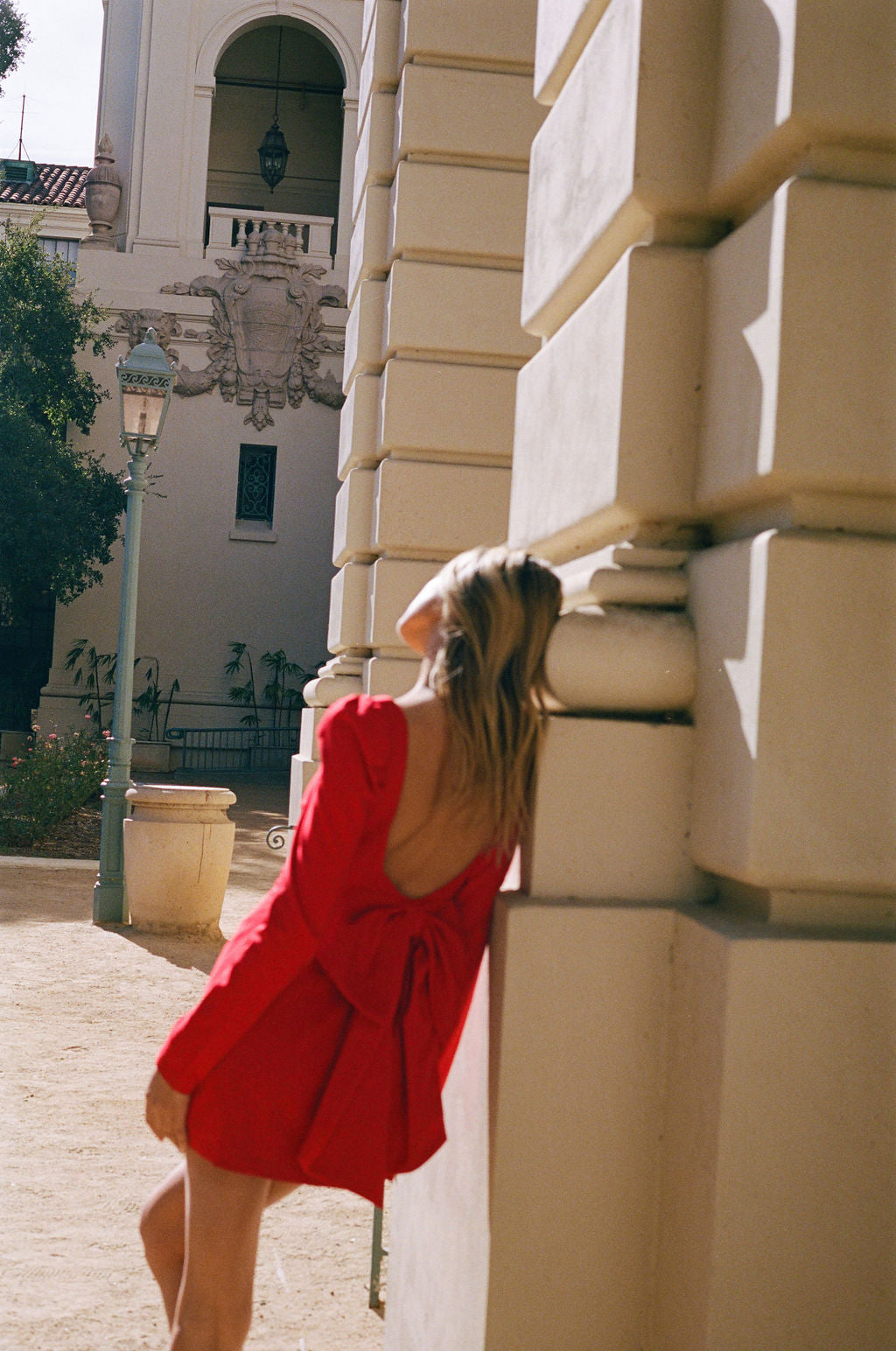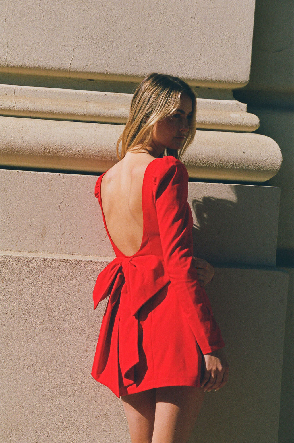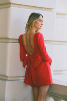 Indulge in luxury with our Rouge Dress, featuring a low back detail and long sleeves for a sophisticated touch. With its alluring mini length and statement bow, you'll make a statement and be the envy of all. Join the record-breaking sign ups for this must-have dress.