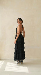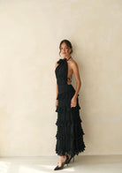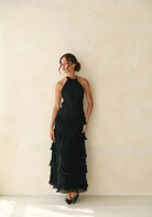 The Ada Dress now in black is crafted from a luxurious crinkle fabric that drapes gracefully, offering a soft and breathable feel against the skin. Its delicate frill details add a touch of whimsy and movement, enhancing the dress's romantic silhouette. The soft floral design, in muted tones, exudes timeless elegance, making it a standout piece in any wardrobe. We always line our dresses so in true ALB style this is the prettiest of dresses.